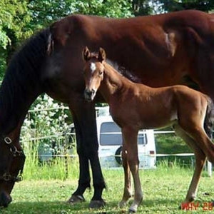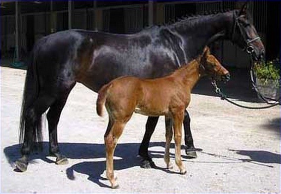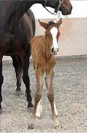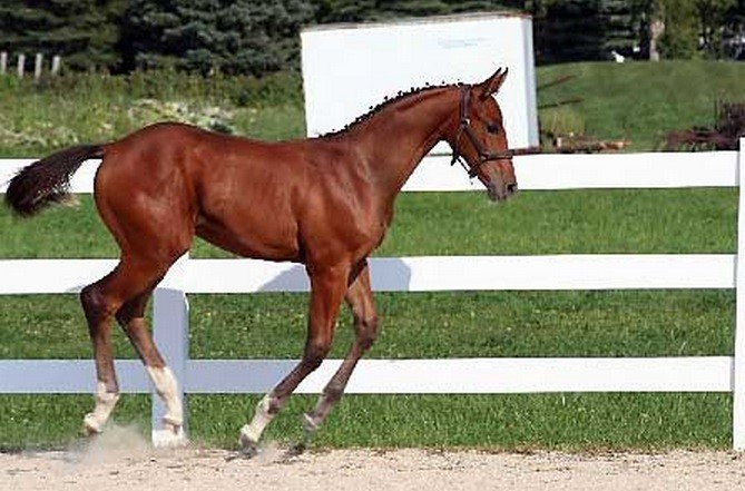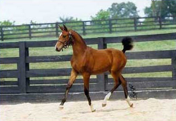 Graf Top II’s pedigree contains the finest jumping blood available in Hannover today. Graf Grannus (9th in the Top List Jumping Index) has an excellent character and well-above-average ability in all disciplines. Grannus, a legend in his own lifetime, was a successful show jumper to the advanced level. Calypso II carries his sire’s rideability, good character, phenomenal jumping ability, and perfect bascule. Graf Top I , fourth on the index of top jumpers for 2002, is siring top jumpers in Germany. His licensed son Gray Top is the latest jumper sensation. The dam of Graf Top II is a full sister to the dam of the Celle stallion, Laptop. The grandmother of Graf Top II and the mother of Spartan are full sisters.
