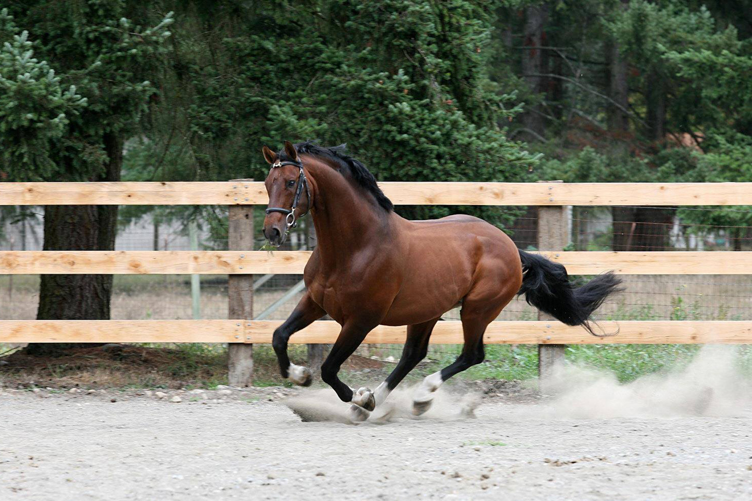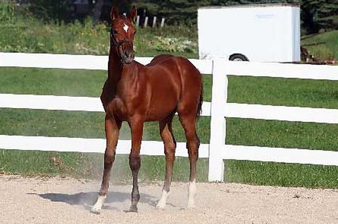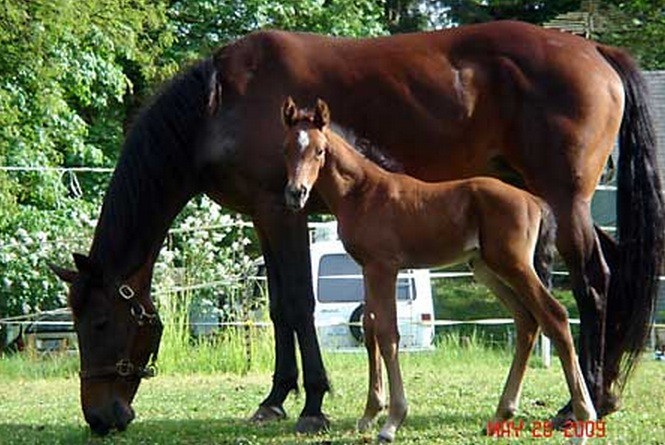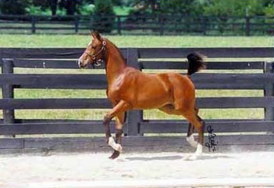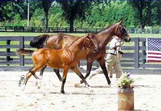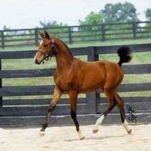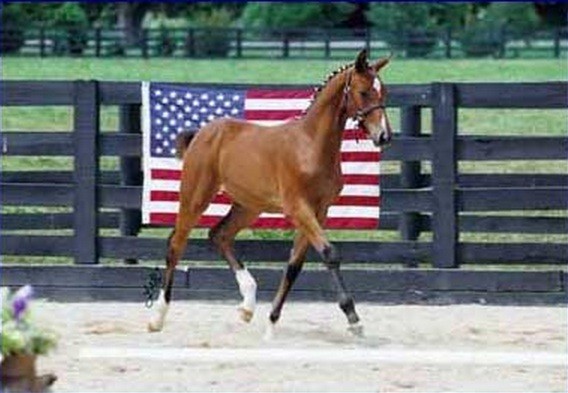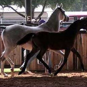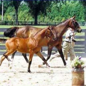 In 2001 and 2002, Graf Top II competed in Training and First Level Dressage, qualifying both years for the CDS Championship Dressage Show with scores in the 70s and winning 2nd place nationally in the USDF Vintage Cup Award. He has received scores of “9” for his gaits. He competed in Level III jumping in 2002. His foals have won many premium awards and are described by the commissions as elegant, athletic, and show excellent movement and natural jumping ability.